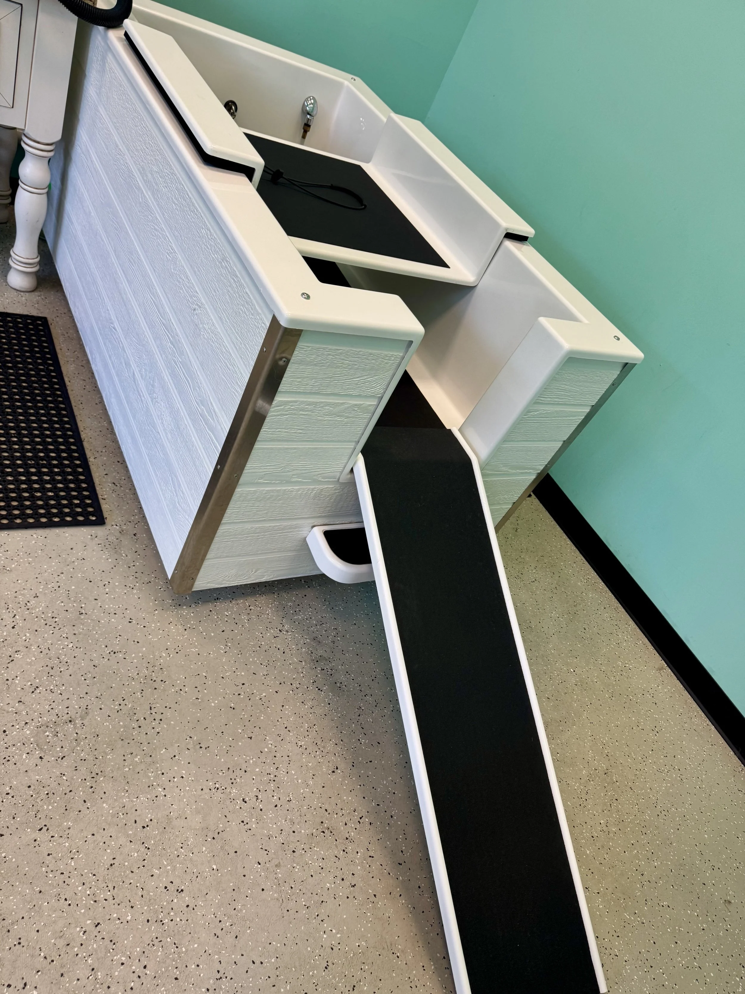 This includes shampoo, conditioner, ear cleaner, face wash, use of unlimited towels, blow dryers, brushes and combs, as well as guidance from staff if needed. We even have pint sized aprons and step stools if responsible kiddos would like to help bathe their furry friends.